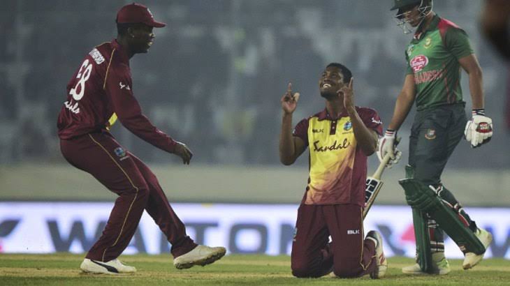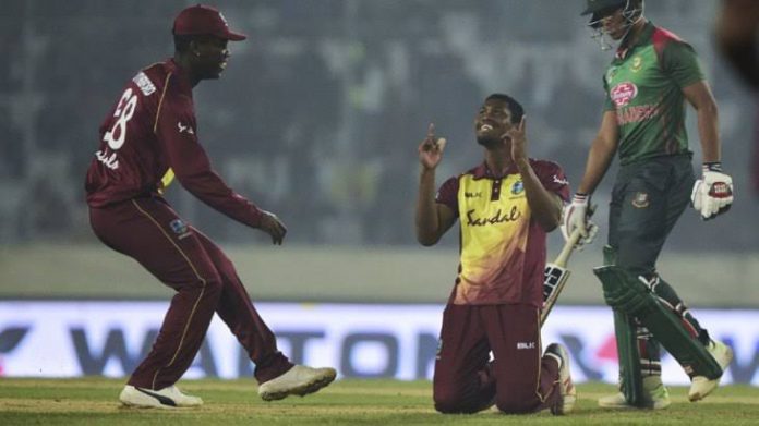 ম্যাচের শুরুতেই এভিন লুইস ঝড়ের মুখে পড়তে হয় বাংলাদেশের বোলারদের। একটা সময় মনে হতে থাকে ক্যারিবীয়দের স্কোর দু’শ ছাড়ানো শুধু সময়ের ব্যাপার। সেই ধারণাকে পাল্টাতে প্রথমে ত্রাতা হয়ে আসেন অধিনায়ক নিজেই। শাই হোপকে ফিরিয়ে দলের প্রথম উইকেট এনে দেন সাকিব। এরপর আর পিছনে ফিরে তাকাতে হয়নি টাইগার বোলারদের। সাকিব, মাহমুদুল্লাহ ও মুস্তাফিজ মিলে ১৯০ রানে সফরকারীদের বেঁধে ফেলে বাংলাদেশ। তিন জনই সমান ৩ উইকেট করে আদায় করেন। মাত্র ৩৬ বলে ঝড়ো ৮৯ রান করে লুইস।দু’শর আগে বেঁধে দিলেও ১৯১ রান টি-টোয়েন্টিতে বড় লক্ষ্য। সেই লক্ষ্যে সূচনাটা ভালোই হচ্ছিল স্বাগতিকদের। মাত্র ১.৪ ওভারেই ২২ রান তুলে নেন তামিম ইকবাল ও লিটন দাস। তবে লিটনের ডাকে দ্রুত তিন রান নিতে গিয়ে রান আউটে কাটা পড়েন দেশ সেরা ওপেনার তামিম।westernঅপর প্রান্তে দ্বিতীয় ম্যাচের মতোই চার-ছয়ের ফুলঝুরি ছড়াতে থাকেন লিটন। মাত্র ৩.৫ ওভারেই দলীয় পঞ্চাশ রান তুলে নেয় বাংলাদেশ। যেখানে লিটনেরই সংগ্রহ ৩৪ রান। ঠিক সেই মুহূর্তে ওশানে থমাসের একটি বল নিয়ে বিপত্তি ঘটে। মাঠের অ্যাম্পিয়ার নো-বল ডাকলেও টিভি রিপ্লাইতে দেখা যায় থমাসের পা দাগের উপরেই ছিল।ওয়েস্ট ইন্ডিজের অধিনায়ক কার্লোস ব্রেথওয়েটসহ প্রত্যেক খেলোয়াড় আবেদন জানালে নিদাহাস ট্রফির বাংলাদেশ-শ্রীলঙ্কার সেই ম্যাচের দৃশ্যপট সামনে চলে আসে। অনেক বাগবিতণ্ডার পর অ্যাম্পায়ারের সিদ্ধান্তে অনড় থাকে ম্যাচ রেফারি। সেই নো-বোলের ফ্রি হিটে ছক্কা আদায় করে নেন সৌম্য সরকার।তবে পরের ওভারেই ফ্যাবিয়েন আল্যেনের বলে ক্যাচ দিয়ে ফেরেন সৌম্য। ঠিক পরের বলে একইভাবে ফিরে যান আগের ম্যাচের সেরা খেলোয়াড় সাকিব। প্রথম দুই টি-টোয়েন্টির মতো এদিনও ব্যর্থ মুশফিকুর রহিম। কেমো পলের বলে ক্যাচ দিয়ে সাজঘরে ফেরেন তিনি। এরপর মাহমুদুল্লাহও ১১ রানে আউট হলে লিটনের দিকেই তাকিয়ে থাকে সমর্থকরা। হতাশ করেন তিনিও। ২৫ বলে ৫২ রান করে আউট হন তিনি। পরের বলেই ফিরে যান আরিফুলও।  ক্রিজে থাকতে পারেননি সাইফুদ্দিন। এরপর মেহেদি মিরাজ (১৯) ও আবু হায়দার রনি (২২*) স্বাগতিক শিবিরে আশার সঞ্চার করে।শেষ পর্যন্ত ১৭ ওভার শেষে ১৪০ রানে অলআউট হয়ে ৫০ রানের হার মানতে হয় স্টিভ রোডেসের শিষ্যদের। সফরকারিদের হয়য়ে কেমো পল নেন ৫ উইকেট।২-১ এ সিরিজ হেরে ২০১৮ সালটা শেষ করল লাল-সবুজের প্রতিনিধিরা।