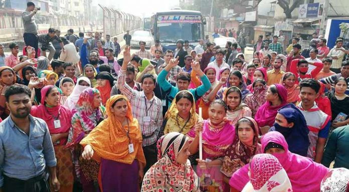 সরকারি মজুরি কাঠামো বৃদ্ধি ও বাস্তবায়নের দাবিতে গত বেশ কয়েকদিন ধরেই কাজ বন্ধ রেখে আন্দোলন চালিয়ে আসছেন পোশাক শ্রমিকরা।