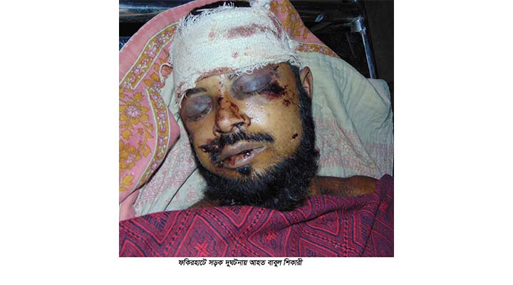 বাগেরহাটের ফকিরহাট উপজেলা আওয়ামী লীগের বিশেষ বর্ধিত সভায় যোগদান করার সময় মটর সাইকেল দুর্ঘটনায় আহত বাবুল শিকারী (৪৫) ৪৮ঘন্টা মূত্যুর সাথে পাঞ্জা লড়ে অবশেষে গতকাল বুধবার বিকালে খুমেকে মূত্যু বরন করেছেন। তিনি উপজেলার বেতাগা ইউনিয়নের চাকুলী গ্রামের মূতঃ আব্দুল কাদের শিকারীর পুত্র। মূত্যুকালে তিনি ১পুত্র ১কন্যা ও স্ত্রী সহ অসংখ্যা আত্মীয় স্বজন রেখে গেছেন। তার অকাল মূত্যুতে গভীর শ্কোপ্রকাশ করে বিবৃতি দিয়েছেন, উপজেলা আ.লীগের সভাপতি ও বেতাগা ইউপি চেয়ারম্যান স্বপন দাশ, সাধারন সম্পাদক শিরিনা আক্তার, সহ-সভাপতি সুবির কুমার মিত্র, মোঃ খলিলুর রহমান, আব্দুর রাজ্জাক, মুস্তাইদ সুজা, যুগ্ন-সাধারন সম্পাদক আবুল কালাম আজাদ, বেতাগা ইউনিয়ন আ.লীগের সভাপতি দুলাল চন্দ্র দাশ, সাধারন সম্পাদক মোঃ ইউনুস আলী শেখ, আ.লীগ নেতা আনন্দ কুমার দাশ, ইউনিয়ন যুবলীগের সভাপতি অজয় কুমার বিশ্বাস, স্বেচ্ছাসেবকলীগের সভাপতি অলিপ কুমার দাশ, সাধারন সম্পাদক আলমগীর হোসেন, ছাত্রলীগের সাধারন সম্পাদক রাতুল কুমার দাশ, শ্রমিকলীগের সভাপতি মিজানুর রহমান, সাধারন সম্পাদক মাহাবুর রহমান, মহিলা লীগের সভাপতি নিলুফার ইয়াসমিন, সাধারন সম্পাদক শমিষ্টা দাশ, ইউনিয়ন পরিষদের সচিব এসএম দাউদ আলী ও ইউপি সদস্য ফোরকান শিকারী সহ বিভিন্ন নের্তৃবৃন্দ। উল্লেখ্য মঙ্গলবার সকালে উপজেলা আওয়ামী লীগের বিশেষ বর্ধিত সভায় যোগদান করার জন তিনি মটর সাইকেল যোগে ফকিরহাট সদরে যাচ্ছিলেন। এসময় অন্য একটি বাসকে সাইড দেওয়ার সময় তিনি কাটাখালী এলাকায় দুর্ঘটনায় গুরুত্বর আহত হলে বাবুল শিকারী-কে খুমেকে ভর্তি করা হয়।