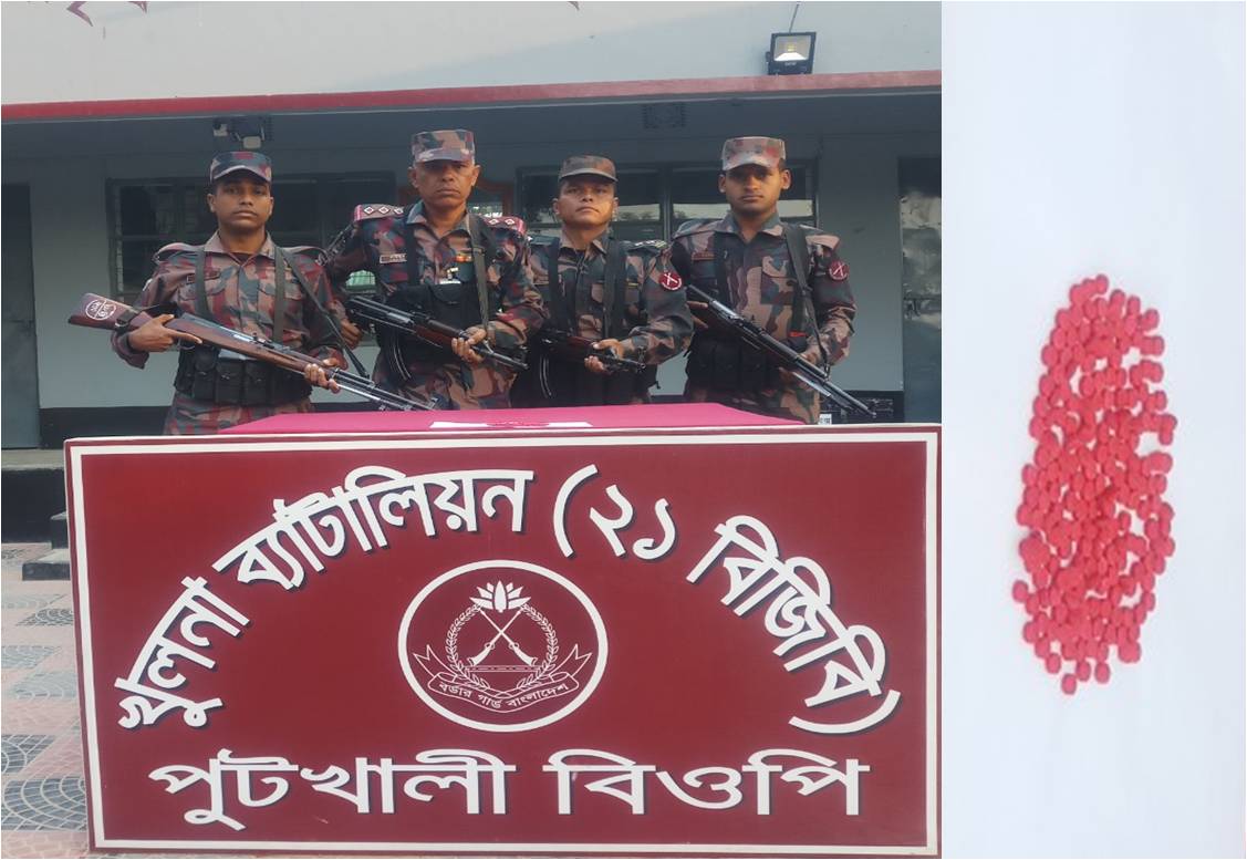 খুলনা ব্যাটালিয়ন (২১ বিজিবি)-এর অধীনস্থ গোগা বিওপি’র একটি টহল দল কর্তৃক গোপন সংবাদের ভিত্তিতে যশোর জেলার শার্শা থানাধীন গোগা গ্রামস্থ মোড়ল পাড়া কাঁচা রাস্তার উপর হতে আজ সকালে মোঃ জসিম গাজী (৩৫), পিতা-মৃত ইসহাক গাজী, গ্রাম-গোগা মোল্লা বাড়ী, পোষ্ট-গোগা, থানা-শার্শা, জেলা-যশোরকে ৬৭ পিস ইয়াবা ট্যাবলেটসহ আটক করা হয়। এছাড়াও পুটখালী বিওপি’র টহল দল কর্তৃক আজ ১৪ ফেব্রুয়ারি ২০১৯ তারিখে রাত ১২.১৫ ঘটিকায় খলসী ইটভাটা কাঁচা রাস্তার উপর হতে ১৮৫ পিস ইয়াবা ট্যাবলেট আটক করা হয়। আটককৃত আসামী ও মাদকদ্রব্য শার্শা থানায় সোপর্দ করার কার্যক্রম প্রক্রিয়াধীন।