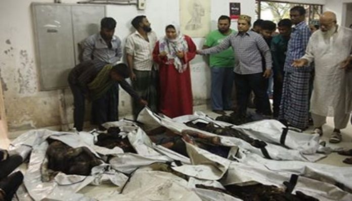 ঢাকা মেডিকেল কলেজ হাসপাতাল মর্গে ভোর থেকেই আসতে থাকে একের পর এক লাশ। বেলা বাড়ার সঙ্গে বাড়তে থাকে লাশের সারি। সকাল থেকেই সেখানে ভিড় করেন অগ্নিকান্ডের পর নিখোঁজ হওয়া মানুষদের স্বজনেরা। তারা কেউ কাঁদছিলেন। কেউ ছুটছিলেন এদিক ওদিক। কেউ কেউ প্রিয় স্বজনের আগুনে পোড়া মৃত দেহটি পেয়ে বিলাপ করছিলেন। স্বজন হারানোদের এমন বিলাপে সকাল থেকে ভারি হয়ে আছে ঢামেক হাসপাতালের মর্গের বাতাস। মর্গে রাখা অধিকাংশ লাশই সনাক্ত করার মতো নয়। লাশগুলো পুড়ে অঙ্গার হয়ে গেছে।