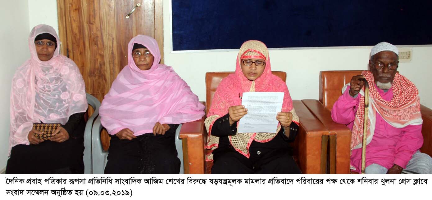 আজ শনিবার বেলা সাড়ে ১২টায় খুলনা প্রেস ক্লাবের শাহাবুদ্দিন আহম্মেদ মিলনায়তনে অনুষ্ঠিত সংবাদ সম্মেলনে সাংবাদিক আজিমের পরিবারের পক্ষ থেকে এ অভিযোগ করা হয়। লিখিত বক্তব্য পাঠ করেন সাংবাদিক আজিম শেখের মা আমেনা বেগম। এ সময় তার স্ত্রী, ৩ বছরের শিশু কন্যা, বোন এবং শ্বশুর-শ্বাশুড়ী ও আত্মীয়-স্বজন উপস্থিত ছিলেন।