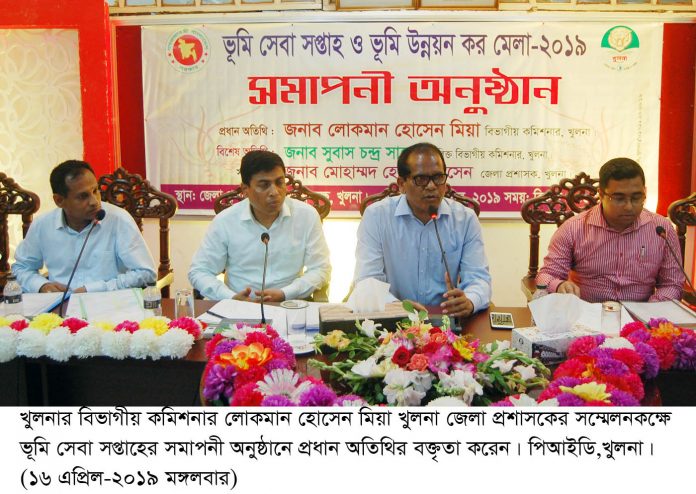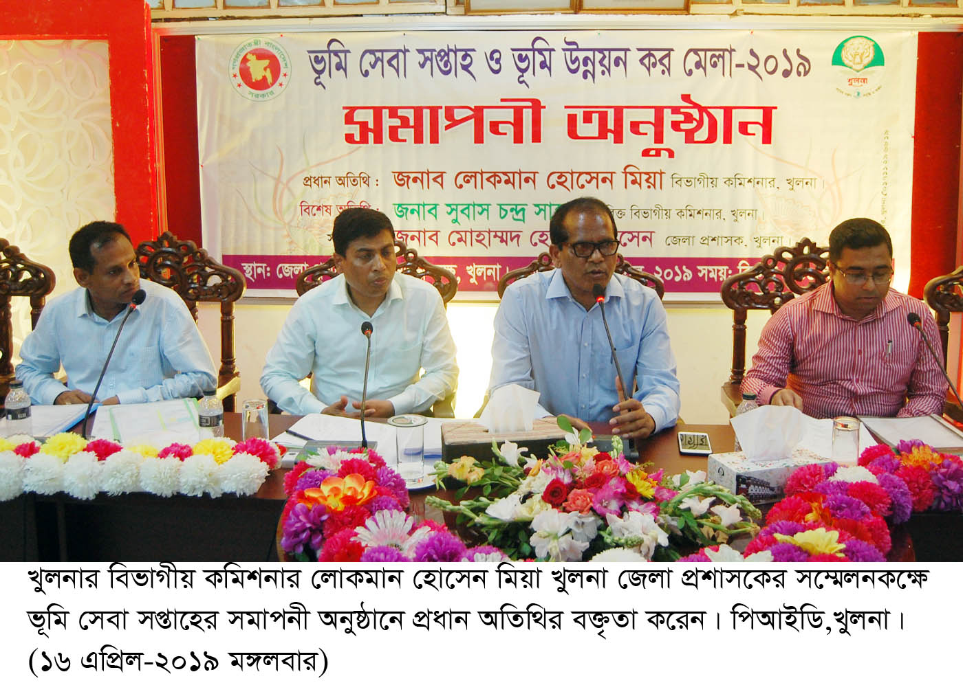 অনুষ্ঠানে প্রধান অতিথির বক্তৃতায় খুলনার বিভাগীয় কমিশনার লোকমান হোসেন মিয়া বলেন, সরকার ভূমি সেবাকে জনগণের দোরগোড়ায় নিয়ে যেতে চায়। এজন্য প্রথমবারের মতো দেশব্যাপী এই ভূমি সেবা সপ্তাহ আয়োজন করেছে। পাশাপাশি ভূমি ব্যবস্থাপনায় আধুনিকায়নের মাধ্যমে স্বচ্ছতা ও জবাবদিহিতা নিশ্চিত করতে কাজ করছে সরকার। ভূমি অফিসে সেবা গ্রহীতা যেন হয়রানির শিকার না হয়, মানুষ যেন ভূমি অফিসে আসতে স্বাচ্ছন্দ্যবোধ করে সেদিকে সজাগ দৃষ্টি রাখার জন্য তিনি ভূমি অফিসের কর্মকর্তা-কর্মচারীদের নির্দেশ দেন।