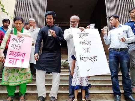 গত ২০শে এপ্রিল ওয়াসার এমডি দাবি করেন, প্রতিষ্ঠানটির সরবরাহকৃত পানি শতভাগ সুপেয়। তার এমন দাবির প্রেক্ষিতেই আজ এই কর্মসূচি পালন করে রাজধানীর জুরাইনবাসী। সৌজন্যে : মানবজিমন