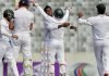 ভালো শুরুর পর ২৩ রানে রান আউট হন ওপেনার কুইন্টন ডি কক। ফাফ ডু প্লেসির সঙ্গে বড় জুটি গড়ার আগেই আরেক ওপেনার মাক্রামকে ফেরান সাকিব। ৪৫ রানে বোল্ড হন তিনি। এরপর সাবলীল খেলতে থাকা ডুপ্লেসিকে বোল্ড করেন মেহেদী মিরাজ।
