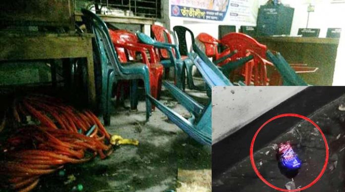 স্থানীয়রা জানান, মাগরিবের নামাজের আগে শিরোমণি আওয়ামী লীগের দলীয় কার্যালয়ে থানা আওয়ামী লীগের সভাপতি শেখ আবিদ হোসেন ও দলের নেতৃবৃন্দ অবস্থান করছিলেন। তিনি মহানগর আওয়ামী লীগের বর্ধিত সভায় যোগদানের উদ্দেশ্যে রওনা হওয়ার কিছু সময় পর কার্যালয়ের মধ্যে হঠাৎ বিকট শব্দে বিস্ফোরণ ঘটে। এতে কার্যালয়ের মধ্যে থাকা চেয়ার, টেবিল দুমড়ে-মুচড়ে ক্ষয়ক্ষতি হয়। ঘটনাস্থলে বিয়ারিং এর টুকরা, স্পাইটের বোতল ও তারসহ কিছু আলামত দেখা যায়। উপস্থিত জনতা জানান, ‘প্যান্ট পরিহিত মধ্য বয়েসি এক ব্যাক্তি দলীয় কার্যালয়ের মধ্যে একটি ব্যাগ রেখে চলে যাওয়ার সময় তাকে জিজ্ঞাসা করি ব্যাগের মধ্যে কি আছে। তিনি কলা আছে বলে টয়লেট করার কথা বলে চলে যাওয়ার কিছু সময় পরে এই বিষ্ফারণের ঘটনা ঘটে’। সুমন জানায় ব্যাগের মধ্যে বিস্ফোরন জাতীয় কিছু রেখে যাওয়ায় এই ঘটনা ঘটেছে। পুলিশের পক্ষ থেকে জানানো হয়েছে, রিমোর্ট কন্ট্রোলের সাহায্যে শক্তিশালী বোমাটির বিস্ফোরণ ঘটানো হয়েছে। বোমা হামলার স্থলটি ঘেরাও করে রেখেছে পুলিশের ক্রাইমসিন ইউনিট।