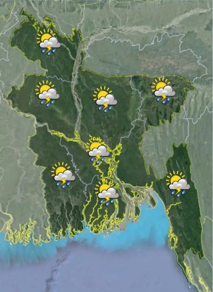 উত্তর বঙ্গোপসাগরে লঘুচাপের কারণে গতকাল বুধবার সকাল থেকে সৃষ্ট বৃষ্টি আরও কয়েকদিন থাকতে পারে। বৃস্পতিবার (২৪ অক্টোবর) আবহাওয়ার পূর্বাভাসে বলা হয়েছে, খুলনা বরিশাল এবং ঢাকা বিভাগের কিছু কিছু জায়গায় এবং রংপুর, রাজশাহী, ময়মনসিংহ, সিলেট এবং চট্টগ্রাম বিভাগের দু’এক জায়গায় অস্থায়ী দমকা হাওয়াসহ বৃষ্টি অথবা বজ্রসহ বৃষ্টিপাত হতে পারে।