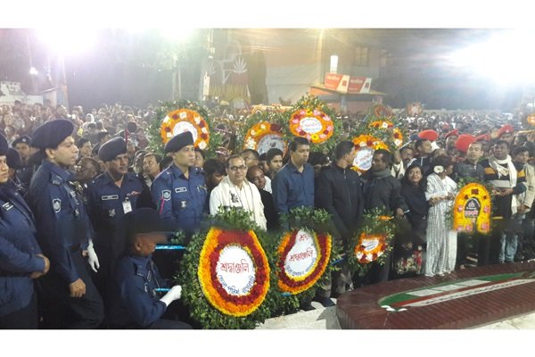 বাগেরহাটে কেন্দ্রীয় শহীদ মিনারে মহান ভাষা দিবসের শুরুতে প্রথমে ভাষাশহীদদের স্মরণে ১মিনিট নিরাবতা পালন করা হয়। এরপর রাত ১২টা ১মিনিটে একুশের প্রথম প্রহরে ভাষাশহীদদের প্রতি পুষ্পমাল্য অর্পণের মধ্য দিয়ে মহান শহীদ দিবস ও আন্তর্জাতিক মাতৃভাষা দিবসের শুভ সূচনা হয়। প্রথমে বাগেরহাটের জেলা প্রশাসক মো. মামুনুর রশীদ, পুলিশ সুপার পংকজ চন্দ্র রায় শহীদ মিনারে পুষ্পমাল্য অর্পণ করেন। এরপর আওয়ামী লীগ, বিএনপিসহ বিভিন্ন রাজনৈতিক দল ও তাদের অঙ্গ সংগঠন, প্রেসক্লাবসহ বিভিন্ন সরকারী-বেসরকারী প্রতিষ্ঠান, বিভিন্ন শিক্ষা প্রতিষ্ঠানসহ সামাজিক ও সাংস্কৃতিক সংগঠনের পক্ষ থেকে শহীদ বেদীতে পুষ্পমাল্য অর্পণ করেন
