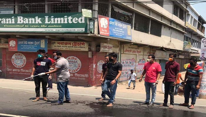 বৃহস্পতিবার সকালে করোনা সংক্রমণ থেকে রক্ষা পেতে অভয়নগর থানা, পৌর ও কলেজ শাখা ছাত্রদলের উদ্দ্যগে নওয়াপাড়া বাজারে করোনা ভাইরাস রোগ প্রতিরোধে জীবাণুনাশক ঔষধ স্প্রে ও জনসচেতনতা বজায় রাখতে ছাত্রদলের কর্মসূচি অনুষ্ঠিত হয়। উক্ত কর্মসূচিতে অংশ করে যশোর জেলা ছাত্রদলের সাবেক সমাজসেবা সম্পাদক মোঃ সাইফুল ইসলাম, অভয়নগর থানা ছাত্রদলের সাবেক সহ সভাপতি মোঃ মাসুদ রানা ( তুহিন) মোঃ আবু হানিফ, মোঃ হানিফ মুন্সি, মোঃ মামুন হোসেন, নওয়াপাড়া পৌর ছাত্রদল নেতা মোঃ সাদ্দাম হোসেন, নুরে নাইম, নওয়াপাড়া কলেজ ছাত্রদল নেতা আরিফুল ইসলাম, এবং ছাত্রদল নেতা পলাশ ফারাজি, মোঃ সুমন প্রমুখ নেতৃবৃন্দ।