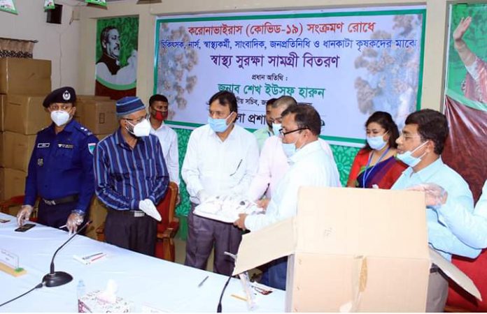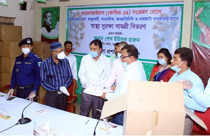 পরে জনপ্রশাসন সচিব শেখ ইউসুফ হারুন চিকিৎসক, নার্স, স্বাস্থ্যকর্মী, সাংবাদিক, কৃষক সংগঠন এবং প্রতিষ্ঠানের প্রতিনিধিদের হাতে পিপিই তুলে দেন।