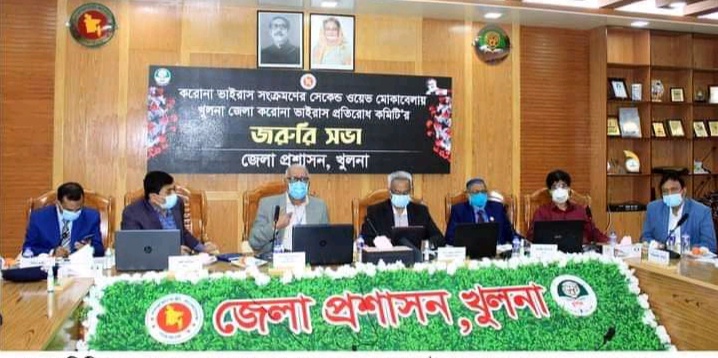 রবিবার সকালে জেলা প্রশাসক মোহাম্মদ হেলাল হোসেনের সভাপতিত্বে তাঁর সম্মেলনকক্ষে খুলনায় করোনাভাইরাস সংক্রমণ প্রতিরোধ কমিটির এক জরুরি সভা অনুষ্ঠিত হয়। কোভিড-১৯ এর দ্বিতীয় ধাক্কা মোকাবেলায় মাস্ক ব্যবহারে আরও জোর দেওয়া হবে। বিনামূল্যে মাস্ক বিতরণের পাশাপাশি শাস্তি ও জরিমানার আওতা বাড়ানো হবে এই সিদ্ধান্ত নেওয়া হয়। খুলনা সিটি কর্পোরেশনের মেয়র তালুকদার আব্দুল খালেক এবং খুলনা জেলায় করোনাভাইরাস সংক্রমণ প্রতিরোধে দায়িত্বপ্রাপ্ত মন্ত্রিপরিষদ বিভাগের সচিব (সমন্বয় ও সংস্কার) মোঃ কামাল হোসেন সভায় উপস্থিত ছিলেন।