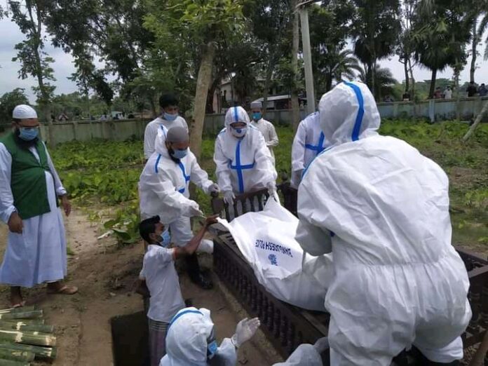 ঝিনাইদহে করোনা আক্রান্ত হয়ে পুলিশ, ব্যাংক কর্মকর্তাসহ ৪ জনের মৃত্যু হয়েছে। ঝিনাইদহ সিভিল সার্জনের দেওয়া তথ্য মতে কুষ্টিয়া এবং ঝিনাইদহ থেকে সোমবার ২০৫ টি নমুনার ফলাফল এসেছে। যার মধ্যে নতুন আক্রান্ত হয়েছেন ৯৫ জন। মৃত ব্যক্তিরা হলেন, জেলার কোটচাদপুর উপজেলার আন্দোলপোতা গ্রামের মৃৃত-মোকাম আলীর ছেলে মোঃ হায়দার আলী। গত রাতে তার মৃত্যু হয়। তিনি গ্রামীন ব্যাংক রাজশাহীতে কর্মকর্তা পদে কর্মরত ছিলেন। এছাড়াও সোমবার সকালে ঝিনাইদহ সদর হাসপাতালে মাগুরা পৌর এলাকার স্টেডিয়াম পাড়ার মৃত মোকছেদ আলীর ছেলে মোঃ মশিউর রহমানের মৃত্যু হয়। তিনি জেলার কালীগঞ্জ উপজেলার তত্তিপুর পুলিশ ফাড়িতে কনস্টবল পদে কর্মরত ছিলেন। এদিকে জেলার হরিনাকুন্ডু উপজেলার কাপাশাটিয়া ইউনিয়নের কুন্ডাগাছা গ্রামের মৃত করিম মন্ডলের ছেলে মোঃ মসলেম উদ্দিন আজ সকালে সদর হাসপাতালের করোনা ইউনিটে মারা যান এবং একই উপজেলার ভায়না ইউনিয়নের লক্ষীকোল গ্রামের মৃত হারেস সরদারের ছেলে মোঃওমর আলী নিজ বাড়িতে চিকিৎসারত অবস্থায় দুপুরে মারা যান। মসলেম উদ্দিন এবং ওমর আলী দুজনেই কৃষি কাজ করতেন। ইসলামিক ফাউন্ডেশনের উপ-পরিচালক মোঃ আব্দুল হামিদ খান জানান, মৃত ব্যক্তিরা সদর হাসপাতালসহ নিজ বাসভবনে মৃত্যুবরণ করেন। পরে ইসলামিক ফাউন্ডেশন গঠিত (ইফা) কমিটি তাদের জানাযা শেষে স্থানীয় গোরস্থানে দাফন সম্পন্ন করেন। এ নিয়ে মোট ৮৫ জন করোনা আক্রান্ত ও উপসর্গ নিয়ে মৃত ব্যক্তির লাশ দাফন করলো ইফা গঠিত কমিটি।