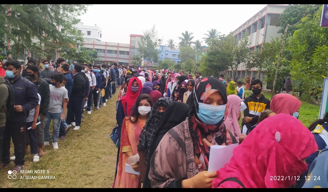 বৃহস্পতিবার খুলনা দৌলতপুর দিবা-নৈশ কলেজে সরকার গঠিত বিশেষ ক্যাম্পেইনে টিকাকেন্দ্রে শিক্ষার্থীদের ঊচড়ে পড়া ভিড় দেখা গেছে।১২ থেকে ১৮ বছরের শিক্ষার্থীদের টিকা দেওয়ার আজ খুলনা দৌলতপুর কলেজে টিকাকেন্দ্রে কেউ কেউ অভিভাবক কেউ কেউ দলবেঁধে স্কুল-মাদ্রাসার থেকে টিকা নিতে আসেন .টিকা দিতে পেরে স্বস্তি ছিল শিক্ষার্থীদের কন্ঠে. তবে দৌলতপুর দিবানা কলেজে পর্যাপ্ত ভূত না থাকায় দীর্ঘ লাইনে দাঁড়িয়ে দূর্ভোগে পড়তে হয় শিক্ষার্থীদের. এতে করোনা সংক্রমনের ঝুঁকির আশঙ্কা করছে শিক্ষার্থী-শিক্ষক-অভিভাবকেরা। নামপ্রকাশে একজন অভিভাবক বলেন আমার ছেলেকে দুইবার টিকা দেয়া হয়েছে আজ পরে এ বিষয়ে জানতে চাইলে ভোটকেন্দ্রে দায়িত্বে থাকা সিভিল সার্জনের এক কর্মকর্তা বলেন এটা ভুল হয়েছে তবে কোন সমস্যা হবে না। আর এক শিক্ষার্থীর টিকা নিয়ে হঠাৎ অসুস্থ হয়ে পড়ে তবে কোনো মারাত্মক সমস্যা দেখা যায়নি। এ বিষয়ে শিক্ষার্থী শিক্ষক অভিভাবক সকল সিভিল সার্জনের ও প্রশাসনের হস্তক্ষেপ কামনা করেছেন যেন আগামীতে স্বাস্থ্যবিধি মেনে নির্দৃষ্ট ভূত বেশি করে শিক্ষার্থীদের টিকা দিলে সংক্রমণের হাত থেকে বাঁচা সম্ভব। কারণ একজন আক্রান্ত হলে অনেকেই করনে আক্রান্ত হতে পারে।