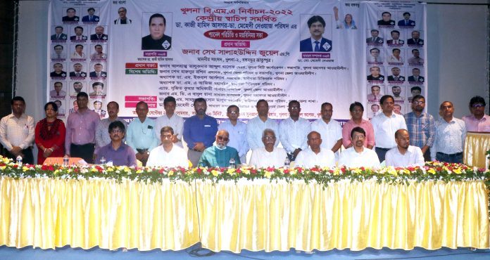 খুলনা মেডিকেল কলেজের এস এম সুলতান অডিটোরিয়ামে ১২ সেপ্টেম্বর সোমবার বেলা ১২ টার সময় স্বাচিপ খুলনা জেলা শাখার সভাপতি ডাঃ এস এম সামছুল আহসান মাসুমের সভাপতিত্বে ও স্বাচিপ জেলা শাখার দপ্তর সম্পাদক ডাঃ এস এম তুষার আলমের পরিচালনায় অনুষ্ঠানে প্রধান অতিথি হিসেবে উপস্থিত ছিলেন খুলনা মহানগর আওয়ামী লীগের সভাপতি ও খুলনা সিটি কর্পোরেশনের মেয়র আলহাজ্ব তালুকদার আব্দুল খালেক। অনুষ্ঠানের শুরুতে স্বাগত বক্তব্য রাখেন বিএমএ-এর সাধারণ সম্পাদক পদপ্রার্থী ডাঃ মোঃ মেহেদী নেওয়াজ এ সময় তিনি নিজেদের মধ্যে কাদা ছোড়াছুড়ি না করতে সকলের প্রতি আহ্বান জানান। তিনি আগামী ১৫ সেপ্টেম্বর উৎসবমুখর পরিবেশে বিএমএ নির্বাচনে সকল ভোটারদের অংশগ্রহণ ও সুষ্ঠু নির্বাচনের জন্য সকলের প্রতি অনুরোধ করেন। অনুষ্ঠানে অনলাইনে যুক্ত হয়ে ভিডিও কনফারেন্সের মাধ্যমে বক্তৃতা করেন বিএমএ-এর সভাপতি প্রার্থী অধ্যাপক ডাঃ কাজী হামিদ আসগর, স্বাধীনতা চিকিৎসক পরিষদ (স্বাচিপ) এর কেন্দ্রীয় কমিটির মহাসচিব অধ্যাপক ডাঃ এম এ আজিজ, স্বাচিপ কেন্দ্রীয় কমিটির সভাপতি অধ্যাপক ডাঃ ইকবাল আর্সলান। অনুষ্ঠানে বিশেষ অতিথি হিসেবে উপস্থিত থেকে বক্তৃতা করেন খুলনা মহানগর আওয়ামী লীগের সাধারণ সম্পাদক এমডি এ বাবুল রানা ও খুলনা জেলা আওয়ামী লীগের সাধারণ সম্পাদক অ্যাডভোকেট সুজিত কুমার অধিকারী। অনুষ্ঠানে উপস্থিত থেকে আরো বক্তৃতা করেন ডাঃ গাজী মিজানুর রহমান, ডাঃ বঙ্গকমল বসু, ডাঃ মোল্লা হারুনুর রশিদ, ডাঃ শেখ আবু রায়হান নিবীড়, ডাঃ ইমরান সুজন প্রমুখ।