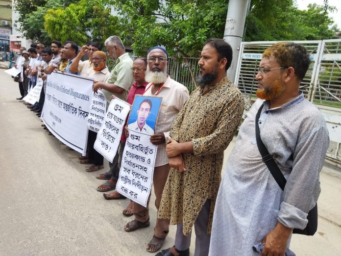 দেশের অন্যতম শীর্ষ মানবাধিকার সংগঠন ‘অধিকার’ ও গুমের শিকার ব্যক্তিদের পরিবারের সদস্যদের সংগঠন ‘মায়ের ডাক’ যৌথভাবে এ কর্মসূচির আয়োজন করে। এর আগে দিবসটি উপলক্ষে বেলা ১১ টায় নগরীর ফুল মার্কেট মোড় থেকে র্যালী বের হয়ে শান্তিধাম মোড় হয়ে জাতিসংঘ পার্কের সামনে গিয়ে মানববন্ধন অনুষ্ঠিত হয়।