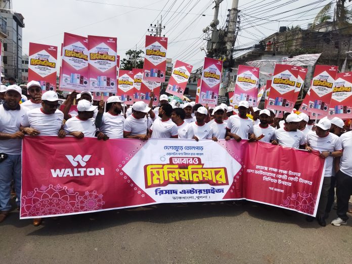 ঈদ উৎসব উপলক্ষ্যে খুলনায় অনুষ্ঠিত হয়েছে দেশের ইলেকট্রনিক্স জায়ান্ট ওয়ালটনের ডিজিটাল ক্যাম্পেইন সিজন-২২ এর ‘আবারো মিলিয়নিয়ার’ ক্যাম্পেইনের ব্র্যান্ডিং কার্যক্রম। একইসঙ্গে দেশব্যাপী আনন্দ র্যালি করেছে ওয়ালটন। দেশের ৭ শতাধিক ওয়ালটন প্লাজায় মেডিক্যাল ক্যাম্পে দেয়া হয়েছে ফ্রি চিকিৎসাসেবা।