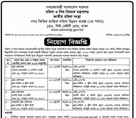 মহিলা ও শিশু বিষয়ক মন্ত্রণালয় এ নিয়োগ- ১৫/১১ আবেদনের শেষ তারিখঃ Nov 15, 2018 Source : The Daily Newage(Monday, October 22,...