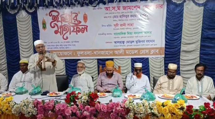 বৃহস্পতিবার ফুলতলা-খানজাহান আলী মডেল প্রেস ক্লাবের ইফতার ও দোয়া অনুষ্ঠিত হয় প্রেস ক্লাবের সভাপতি মিয়া বদরুল আলমের সভাপতিত্বে। রেজোয়ান আকুঞ্জী রাজা ও সিনিয়র সাংবাদিক আবু দাউদ ইমরানের সঞ্চালনায় প্রধান আলোচক হিসেবে উপস্থিত ছিলেন ফুলতলা উপজেলা পরিষদের নির্বাহী কর্মকর্তার প্রতিনিধি আনোয়ার হোসেন। বিশেষ অতিথি হিসেবে উপস্থিত ছিলেন ফুলতলা উপজেলা বিএনপির আহবায়ক শেখ আবুল বাশার, খানজাহান আলী থানা...